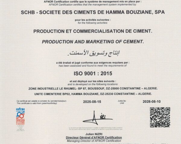 La Société des Ciments de Hamma Bouziane (SCHB-Spa), filiale du Groupe Industriel des Ciments d’Algérie (GICA)…