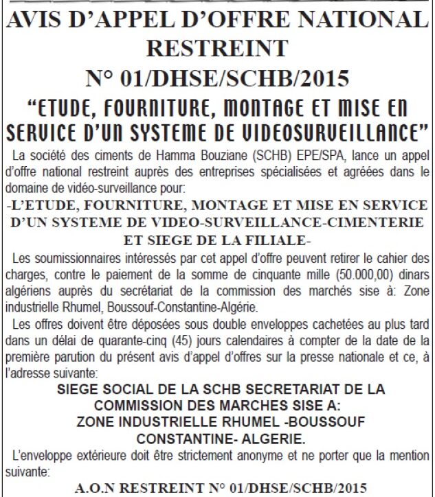Direction Générale (Tel) 213 31 60 65 43 (Fax) 213 31 60 65 39